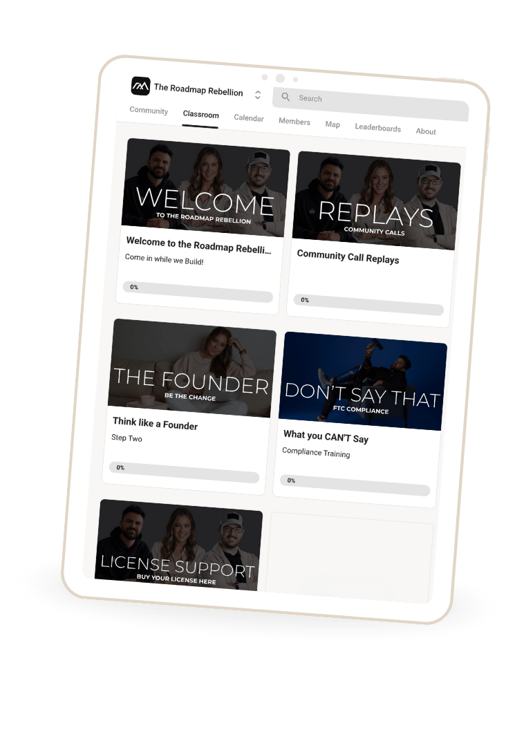 At the Roadmap, we tell you what you need to hear, not what you want to hear. Too often, the "laptop lifestyle" dream is sold with false expectations and fake success stories. You can build the business of your dreams and live the life you want, but we're here to show you the truth behind what it actually takes without the BS tactics that could leave you worse off than when you started.